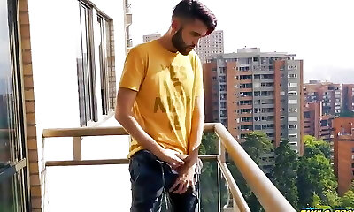 Jacking off my monstrous uncut cock in the balcony did i get caught?